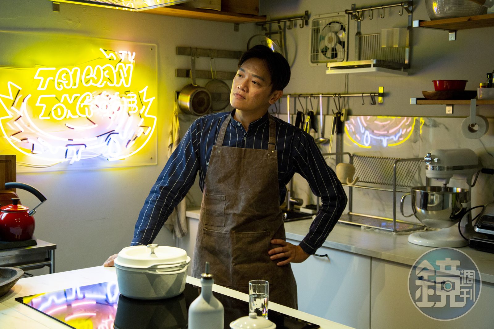 大學時,他最常做的2種菜是:泡麵和火鍋。他自稱當時是假掰的文青,所以還曾照著當時出版的村上春樹小說食譜書做過義大利麵。這就是他僅有的飲食履歷,卻在23歲那年,原本打算出國念行銷,先在一家廚藝教室打工存學費。怎料廚藝課程賣太好,而剛好內部的員工離職:「老闆就叫我上場,先是幫忙主持、翻譯,跟廚師設計菜單,後來就變成我也開課了…。」