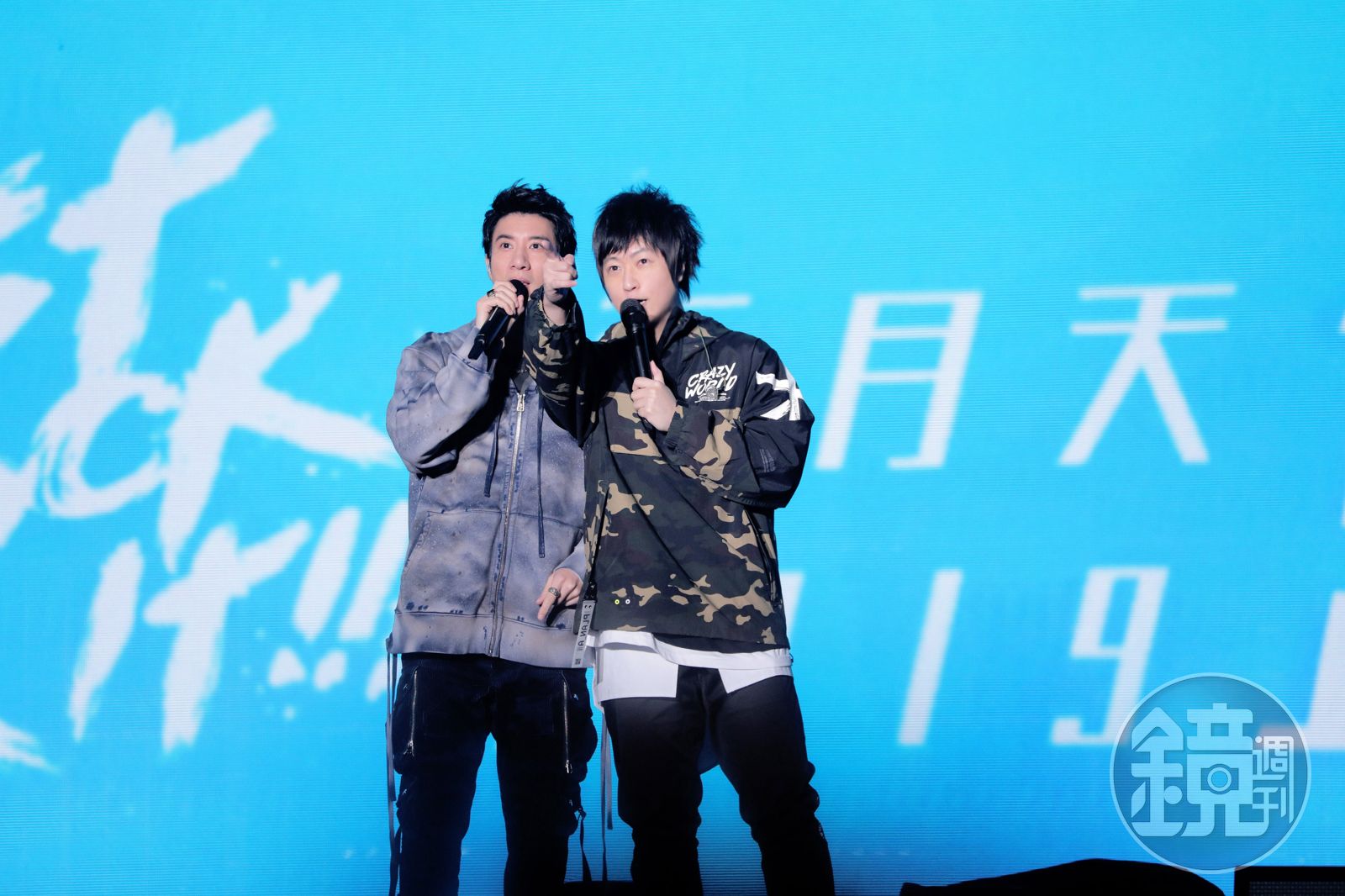 今年6月,阿信擔任王力宏演唱會台北站嘉賓,秀rap大玩搖滾版〈在梅邊〉,引發熱議後,2人就約定好要合體創作新歌,不過阿信未兌現承諾,就先和周杰倫合體〈說好不哭〉,接著又回邀王力宏於27日擔任嘉賓,2人合體演出再度點燃場內外歌迷朋友熱情,上演萬人合唱〈乾杯〉。