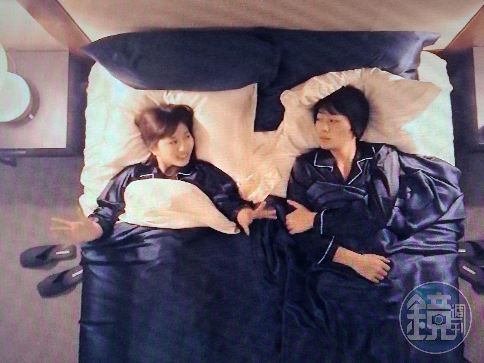 犬飼貴丈與女主角共同生活在一個房子裡,一起吃飯、聊天認識彼此,穿上安排好的情侶睡衣睡在同一張床上,女主角要上床時因為素顏非常害羞,讓犬飼貴丈安慰:「我視力不好,就算妳靠很近我也看不清楚,沒關係的。」女生才迅速鑽進被窩。