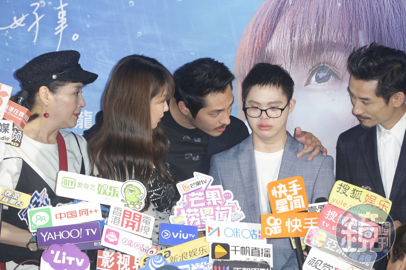 至於真正的主角蔡佳宏,本來從頭到尾都開心、笑嘻嘻的,沒想到在媒體聯訪的時候,突然哭了起來,讓眾人都驚訝到底是怎麼了?原來他看到有這麼多人出席首映會支持,非常感動,所以眼淚就掉下來了!於是郭書瑤趕緊幫他擦去眼淚,讓大家看到他真情流露的一面。