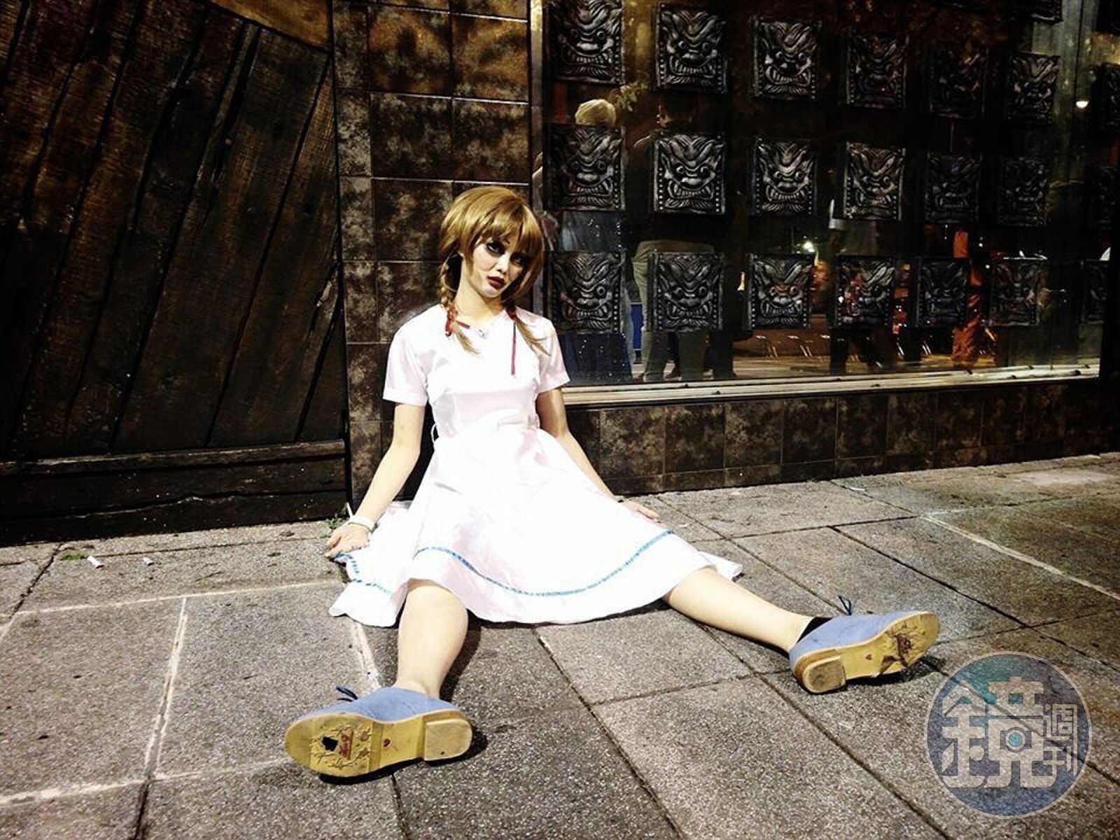 不僅如此,走在人行道上,行人也刻意繞開她而走,最後她乾脆就地坐下安靜演出「安娜貝爾洋娃娃」,有人經過立刻跳起來張牙舞爪,成功嚇壞不少人。舒子晨得意地說:「這應該是我最難忘的萬聖節了,雖然全世界都不想理我,印象超深刻,但很好笑,玩得超開心的!」