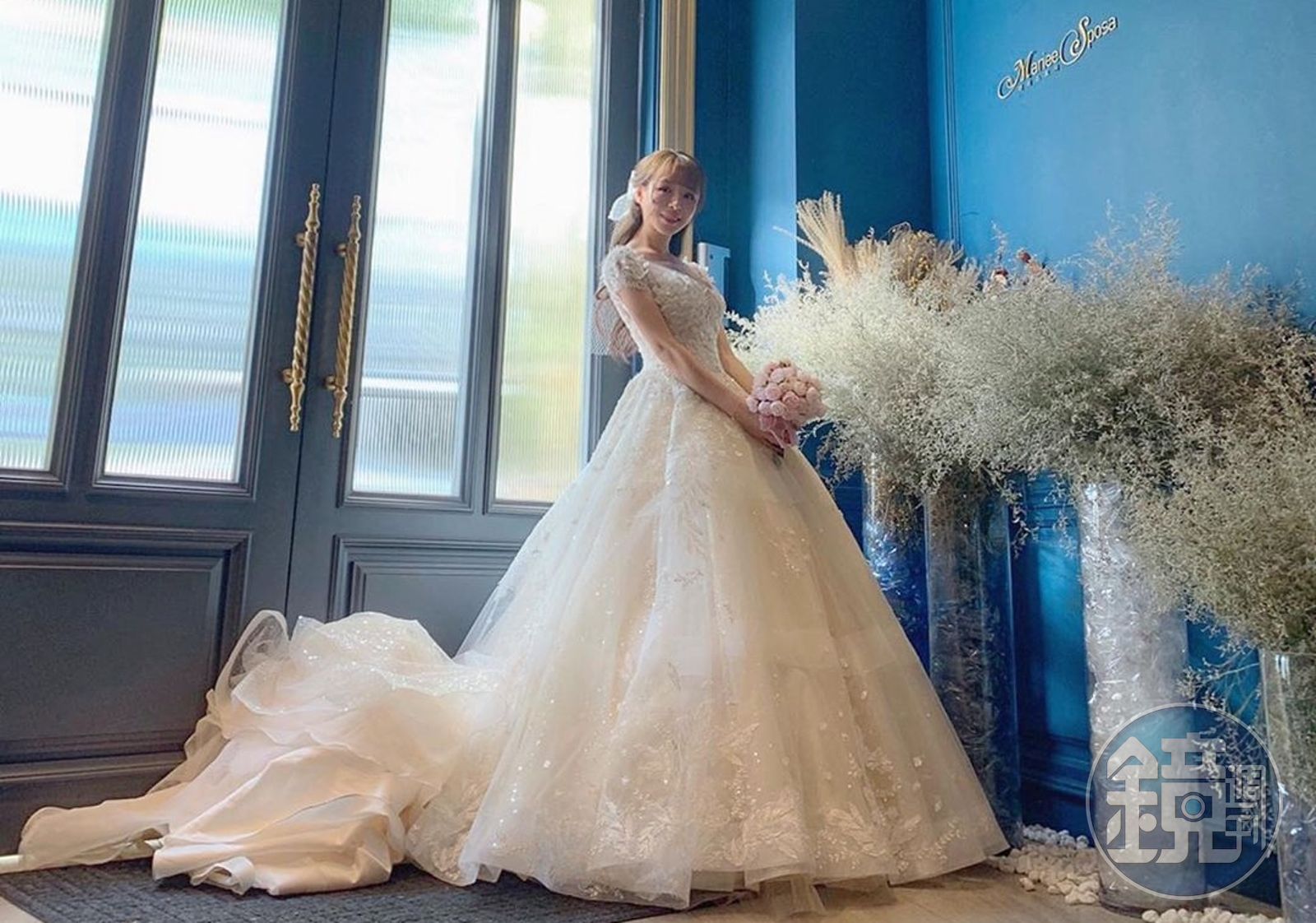 在IG照片中看到元元紮起公主頭,身穿白色低胸爆乳婚紗,簡直美翻了。擁有美麗胸器的她,胸前深V讓北半球呼之欲出,合身剪裁更凸顯纖細腰身,大秀火辣身材,手上還拿著捧花,對著鏡頭露出嬌羞甜笑。