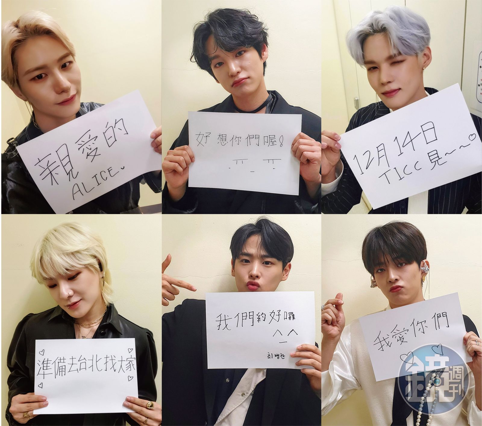 為了和台灣愛麗絲(VICTON粉絲名)見面,VICTON成員特地親筆寫下中文留言,「親愛的ALICE好想你們喔,12月14日TICC見,準備去台北找大家,我們約好囉,我愛你們。」並拍下可愛又帥氣的自拍照,傳達對粉絲的心意。