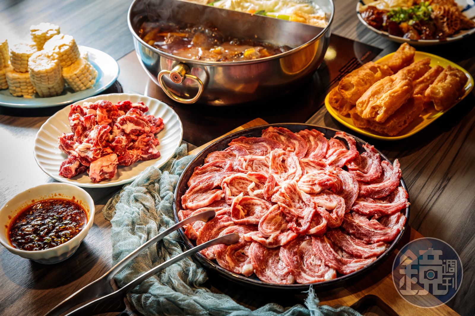 牛骨麻辣湯頭也是劉柏翰絞盡腦汁2個月的傑作,台灣牛肉質與香氣都屬細緻,為了不讓麻辣壓過鋒頭,他先以牛骨加上28種中藥熬製底湯,再以牛油加入豆瓣醬、花椒等辛香料炒製成第二層,最後加入蔥、蒜、滷鴨血豆腐再滾,層次分明,又不搶味。