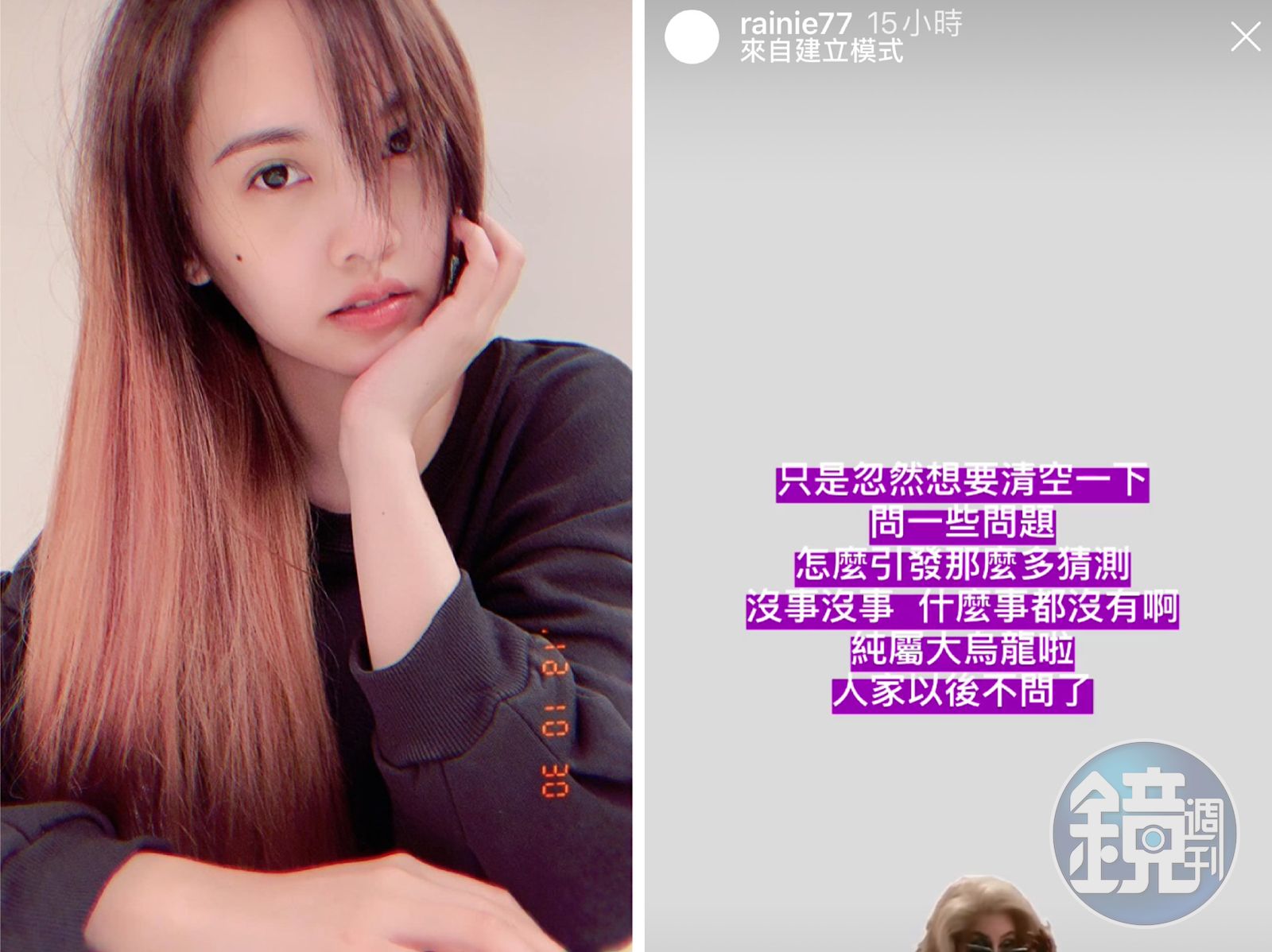 楊丞琳寫道「只是忽然想要清空一下,問一些問題,怎麼引發這麼多猜測?沒事沒事,什麼事都沒有,純屬大烏龍啦,人家以後不問了」,這一連串無厘頭的舉動不僅讓喜愛她的粉絲嚇出一身冷汗,但看到她最後的解釋,也讓粉絲放下心中一顆大石。 其實藝人這樣大舉刪社群文章的動作不多,通常都是發生什麼大事才會如此,但當然也有反向操作博宣傳的情形發生。譬如2年前歌壇天后張惠妹也曾刪光IG宣傳新專輯,而這次楊丞琳這番舉動,時間點剛好在她新專輯即將推出的時刻,也難怪不少網友推測這一切都是為了宣傳新專輯做鋪路。