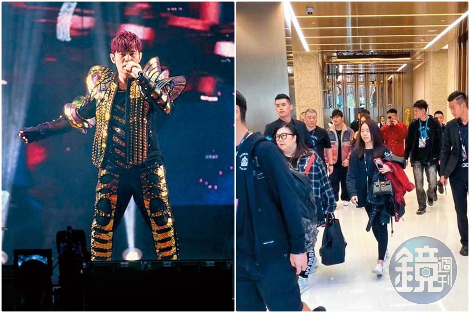 當天,周杰倫與昆凌一身休閒出場,2人出場前,就先有2位助理幫忙開道,待他一出場,多位保鑣與工作人員立刻一擁而上,細數約莫8個工作人員嚴陣以待,完全撐出他的地位和架勢。