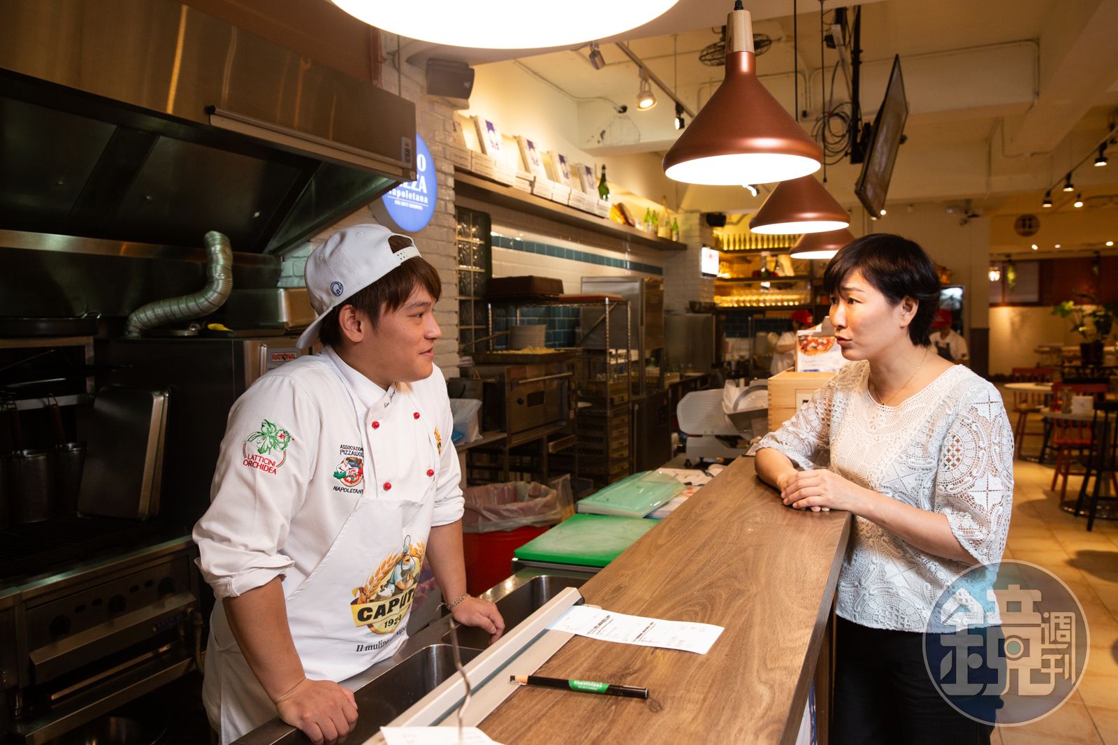 當時她與先生在新北蘆洲、新莊開義式餐廳「Tom's Pizzeria Trattoria」9年,也帶隊參賽,賽中她首次見鄭羽辰製作披薩,便預測他會奪冠,賽後她如粉絲般向同行打聽、網路搜尋,在IG追蹤鄭羽辰,想請他到店內教學,二人一見如故,理念相同,都想推廣正統拿坡里披薩,但鄭羽辰已準備到曾獲CAPUTO盃國際傳統組冠軍的日本餐廳「Solo Pizza Napoletana」上班。