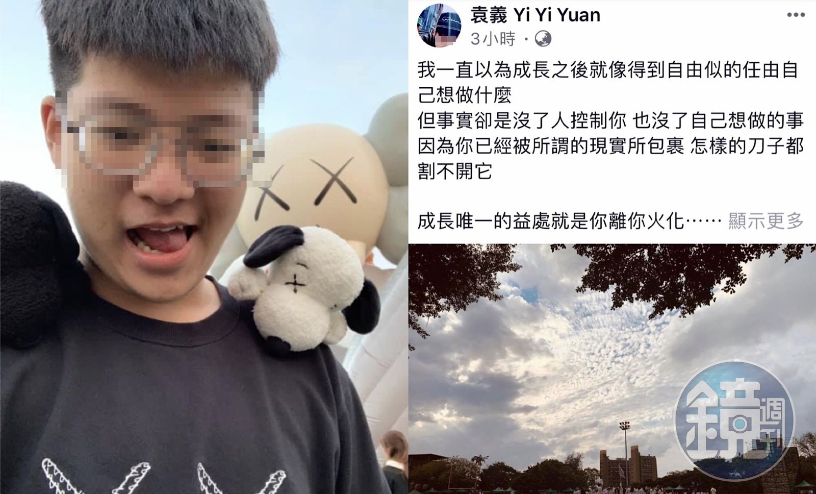 袁惟仁之子袁義在臉書貼文引人遐想。(翻攝自袁義臉書)發布時間:2019.11.08 11:29 臺北時間