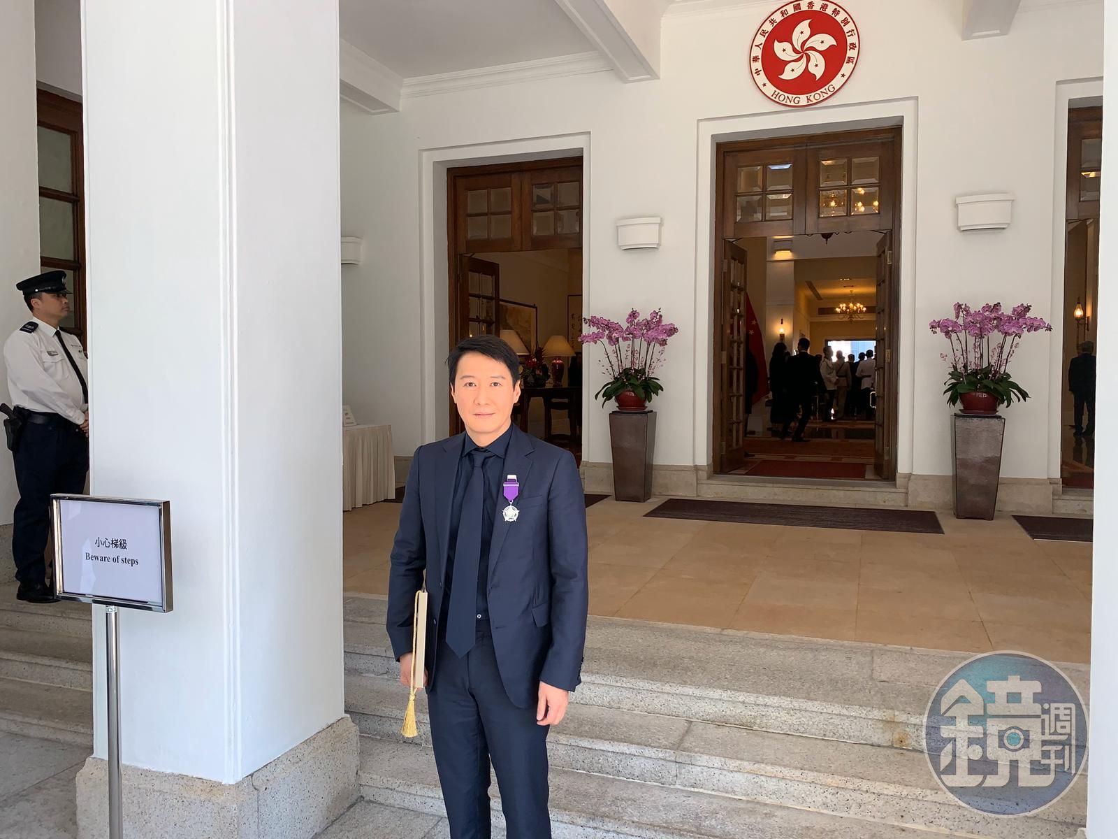52歲港星黎明今日第3度獲授勳,他於早上到達禮賓府,獲頒授「銀紫荊星章」。(黎明提供)發布時間:2019.11.09 18:08 臺北時間