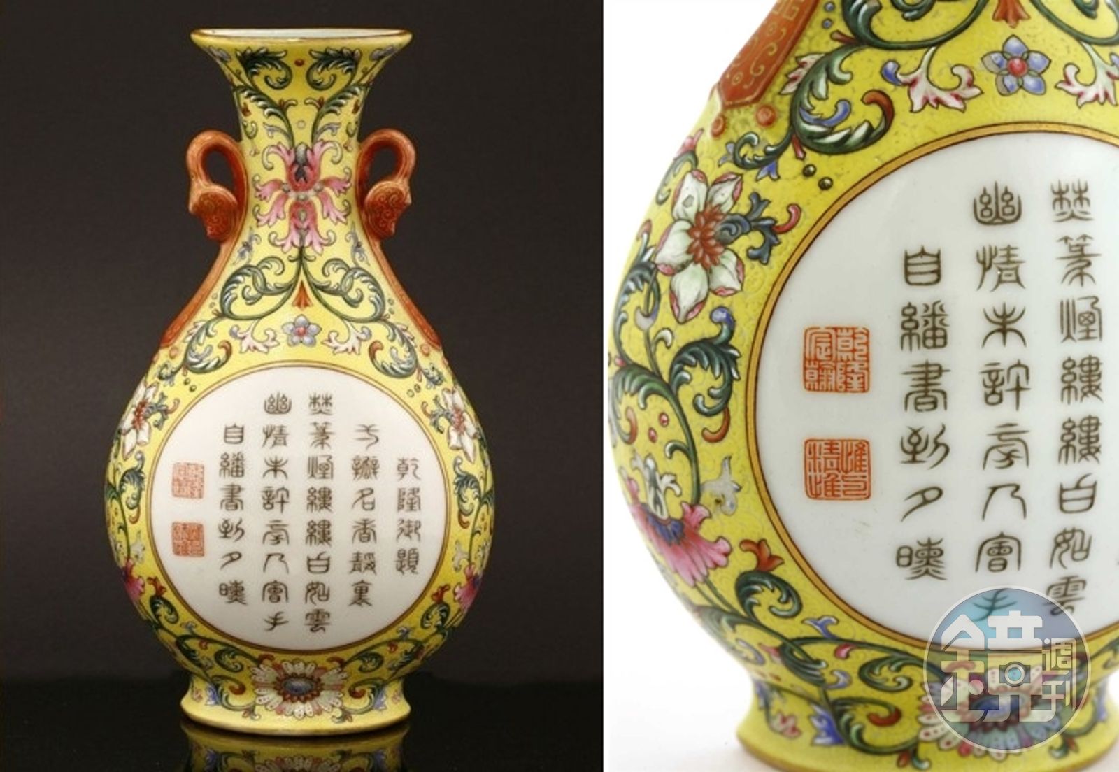 「Sworders」亞洲藝術部門負責人李業學(Yexue Li,音譯)表示,這個花瓶非常特別,根據上方的乾隆題詞可推測,這是皇帝所委託製作。機緣巧合下被一名父親買下,並因此獲得一筆巨款改變一生,這真是一個很棒的故事!