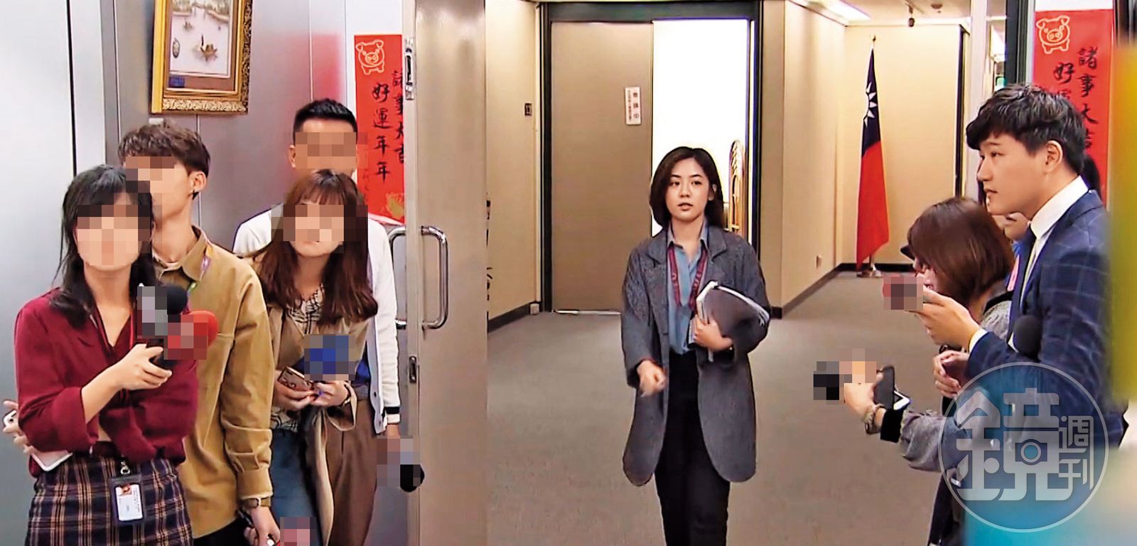 根據媒體直播畫面,劉男與前女友雖同框在現場採訪,但在等待學姐現身時,前女友表情一臉冷淡,雖不時望向劉男的方向,但二人卻各自站在不同角落,完全沒有交談,當學姐從辦公室走向媒體採訪區時,眼神不經意望向劉男,劉與前女友的目光則是往前直視,並未看向學姐。