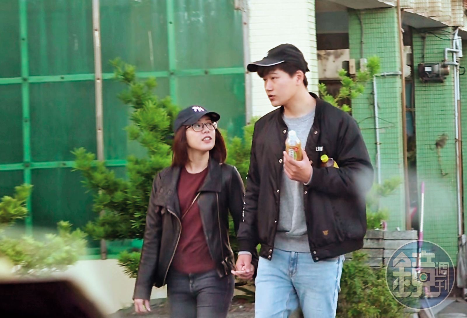 本刊直擊,9日下午約2點,學姐和花美男十分有默契地一同戴著鴨舌帽外出,悠閒地沿著大坑路漫步往頭城車站附近用餐,戴著黑框眼鏡的學姐明顯看得出未多做妝扮,而一路與她十指緊扣的花美男,可能是前夜睡眠不足,邊走邊打了哈欠;散步不到10分鐘,按耐不住愛意的花美男,便在人車來往的路邊一把熊抱起學姐激吻,2人就這樣一路曬恩愛到鎮上一家麵包烘焙坊。