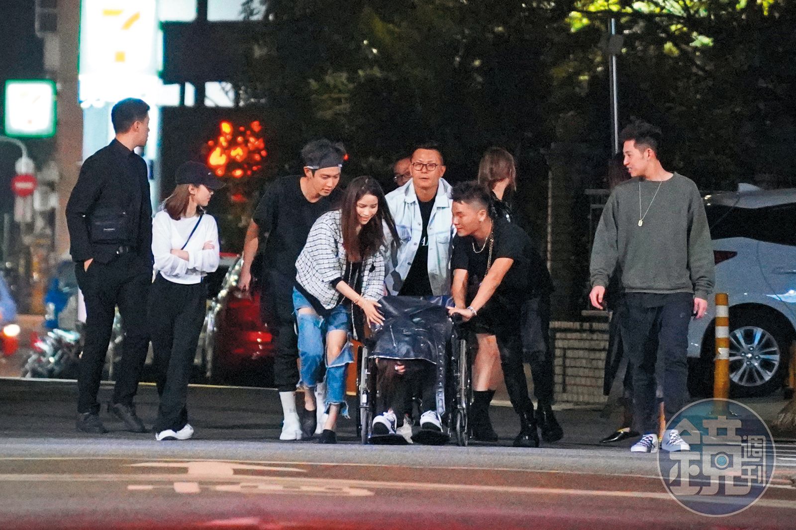 11月4日凌晨約3點,本刊目擊柯震東與一眾好友從台北東區錢櫃離開,其中一人還坐在輪椅上,柯震東和一堆男女手忙腳亂推著看似喝醉的友人,一群人浩浩蕩蕩走往柯家。