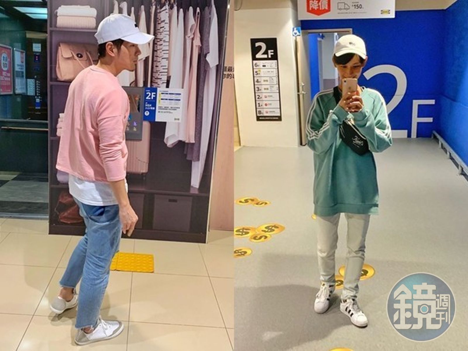 宥勝換上老婆的粉色上衣後,雖然衣服明顯短了一截,但幸好他裡面還有一件白T,不至於讓肚子跑出來見客,而小嫻穿上老公的衣服後,長度則剛好遮住屁股,順利替她化解尷尬的狀況,也讓她開心直呼要幫「暖男」拍照。