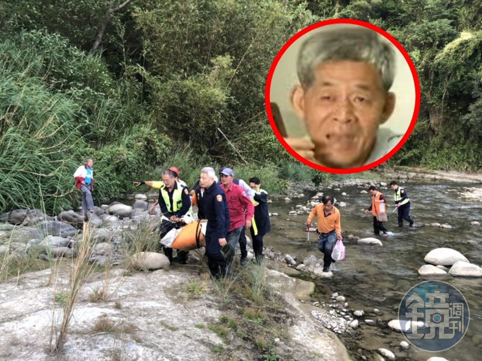 18日上午,搜救人員擴大搜查範圍,約中午12時30分發現該步道與中港溪之間的山壁上,疑似有人倒臥其中,警方以空拍機確認位置後,於下午16時55分警方聯合消防隊與民間救援人力共同協助下,將遺體吊掛下山運送至河堤,經家屬確認死者為賴阿勝。警方初步研判可能是失足跌落,家屬懷疑賴阿勝有心臟方面疾病,可能發作導致跌倒,但詳細原因仍待釐清。