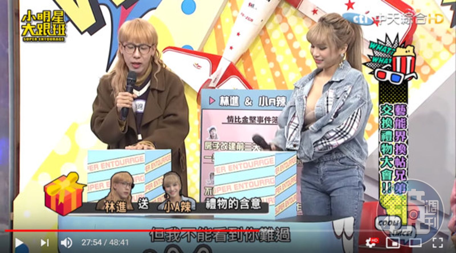 雖然2人因網紅事業賺了不少錢,但還是一起住在東區的老公寓裡,小A辣表示,當時看了林進的影片之後,雖然經紀人不看好,但她還是極力推薦,認為「他以後一定會比我紅」將林進拉進經紀公司,對於這段知遇之情,林進也透露,當初要是沒有A辣這樣看好我的話,我覺得就沒有現在的我。」