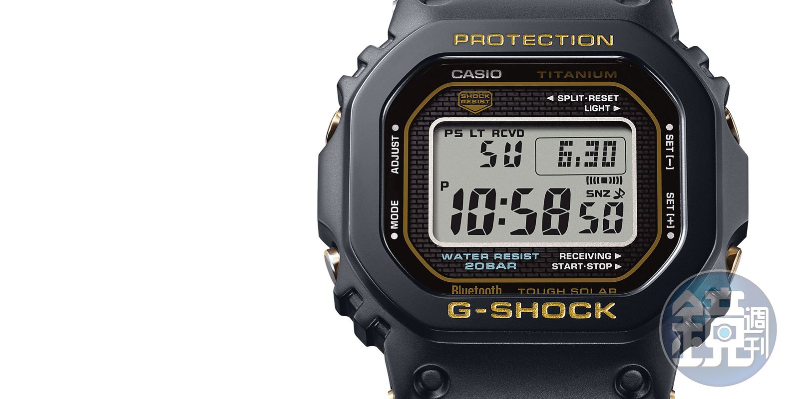 GMW-B5000TB完美復刻G-SHOCK DW-5000C-1B的外觀特色,以鈦金屬重新演繹,從錶殼、錶帶、錶圈、錶背與按鈕皆採用鈦金屬材質製成,對比先前不鏽鋼的款式足足輕了57公克,而且鈦金屬外層還施以類鑽碳(DLC)塗層加工來增加耐磨性。招牌的方型液晶顯示螢幕,則是用上金色字體點綴,看起來更搶眼。鏡面更是採用藍寶石水晶材質,液晶顯示屏則採用STN-LCD。同時,GMW-B5000TB配有藍牙智慧型手機連接功能,可透過手機輕鬆調整當地時間、世界時間及其他設定。不管是材質與功能都是目前G-SHOCK相當高階的規格,因此定價高達NT$39,900。