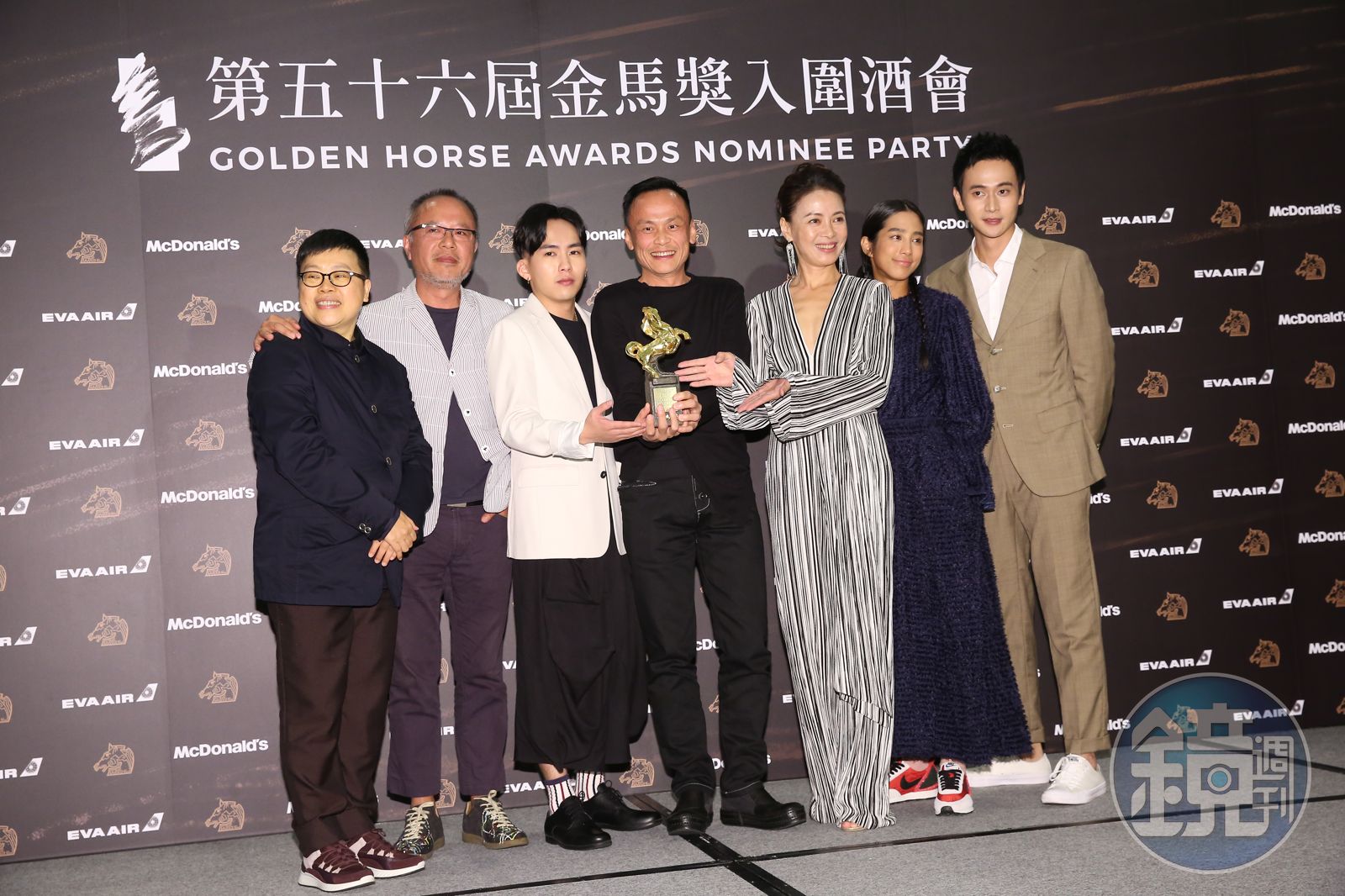 鍾孟宏帶著入圍的演員一起上台領觀眾票選最佳影片獎。發布時間:2019.11.22 21:36 臺北時間