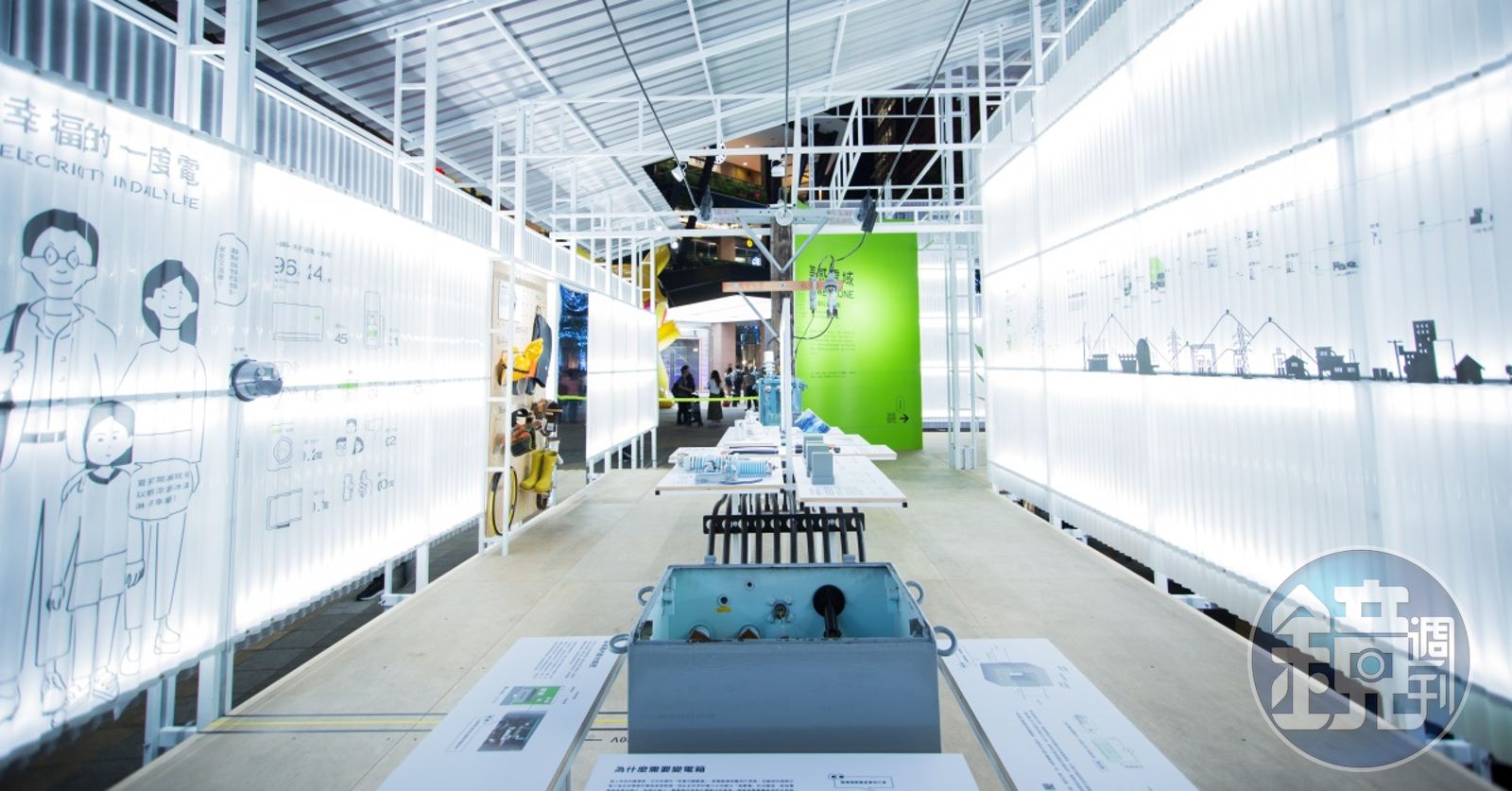 「美感電域 POWER ZONE」打破知識型展覽的靜態印象,強調實做與互動,現場共分為「電區」及「美區」兩大區域,兼具科普教學和美學對話,走一趟「電區」,實際瞧瞧電箱當中的設備及運作原理,了解我們的生活用電從何而來,還能穿上台電輸配電維修人員裝備,化身搶修電力的全民英雄;「美區」則聚焦在變電箱的美學討論,展出街道上常見的幾種變電箱,以色彩、符號和比例的不同,傳達變電箱之於街景的影響力,帶給民眾城市美感的反饋。此外,展覽期間也邀請到台電專家、水越設計創辦人周育如到場舉辦工作坊,親自傳授各種電知識及城市美學概念,活動均為免費參與。