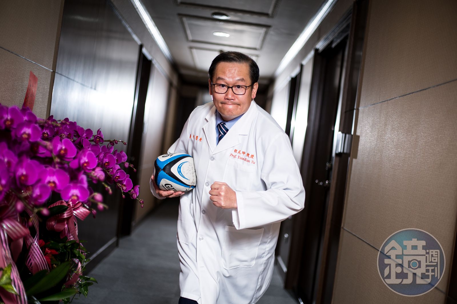 但,外科醫師的手最是寶貴,不怕受傷嗎?他笑稱這確實是個「不良嗜好」,連義大集團董事長林義守都常擔心他打球受傷,「我身上的傷全都是打橄欖球造成的,不過我會注意雙手,我從小練柔道,知道怎麼撞可以避開手受傷,要很小心,而且我是外科醫生,有時候就把手指包紮起來。」