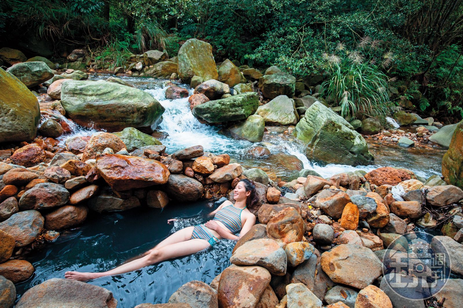 溪畔有前人建好的池子及水管,將泉水引流至下方水池中,不過池子位置還是高於一旁的磺溪,源泉溫度過高,只適合泡泡腳,若想全身浸浴溫泉之中,則得親自造池,再以人工方式至磺溪取冷水降溫,但野溪溫泉好玩的地方就在這裡,勞動之後泡暖湯更舒服。