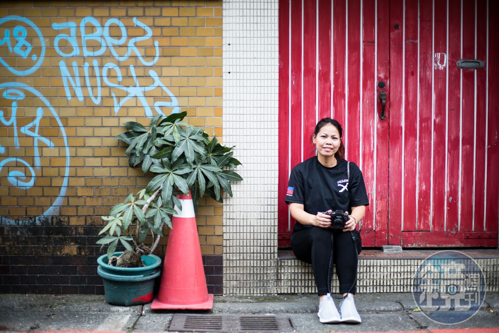 這一趟來台灣,是以攝影師身分。在One-Forty的【轉機】年度攝影展展場裡,她親自解說攝影作品,自在而親切。開設街頭攝影工作坊,更是與學員一起走進台北街頭,街景雖然枯燥,處處是鐵窗與冷氣室外機,但她挖掘出樂趣,將綠色的人行道與腳踏車,組合成一幅抽象畫;把兩座冷氣室外機、灰撲撲的牆壁、路樹、盆栽,在鏡頭裡呈現為一張笑臉。