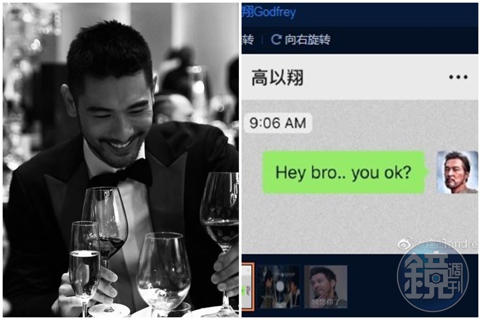 連凱和高以翔因拍戲建立起好交情,在高以翔送醫的消息曝光後,他第一時間傳訊關心。(翻攝自連凱微博)發布時間:2019.11.28 13:42 臺北時間