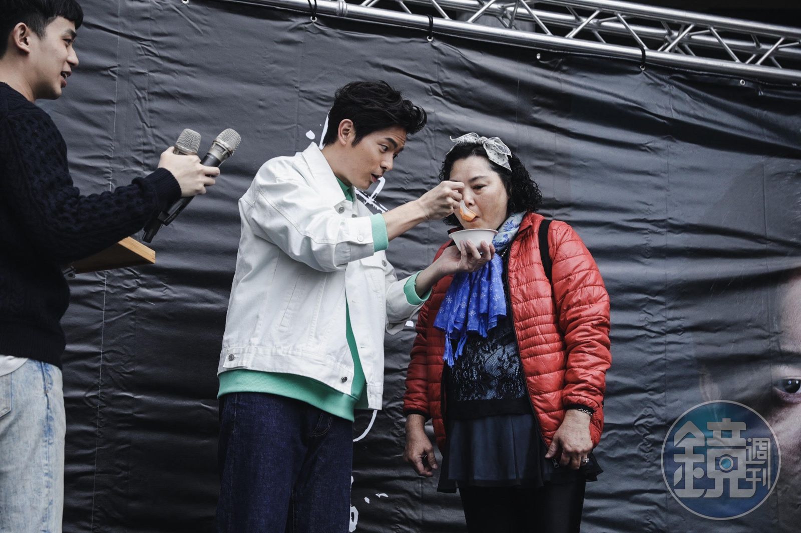 只是上台品嚐體驗的書迷似乎面有難色,宥勝見狀一再強調:「這在南極吃真的很好吃!你要先想像你正在零下30度的冰原裡,然後吃著熱騰騰的濃縮包,真的很幸福喔(哈),而且在南極喝到阿根廷蘋果汁真的就是久旱逢甘霖那種驚豔!完美絕配!」