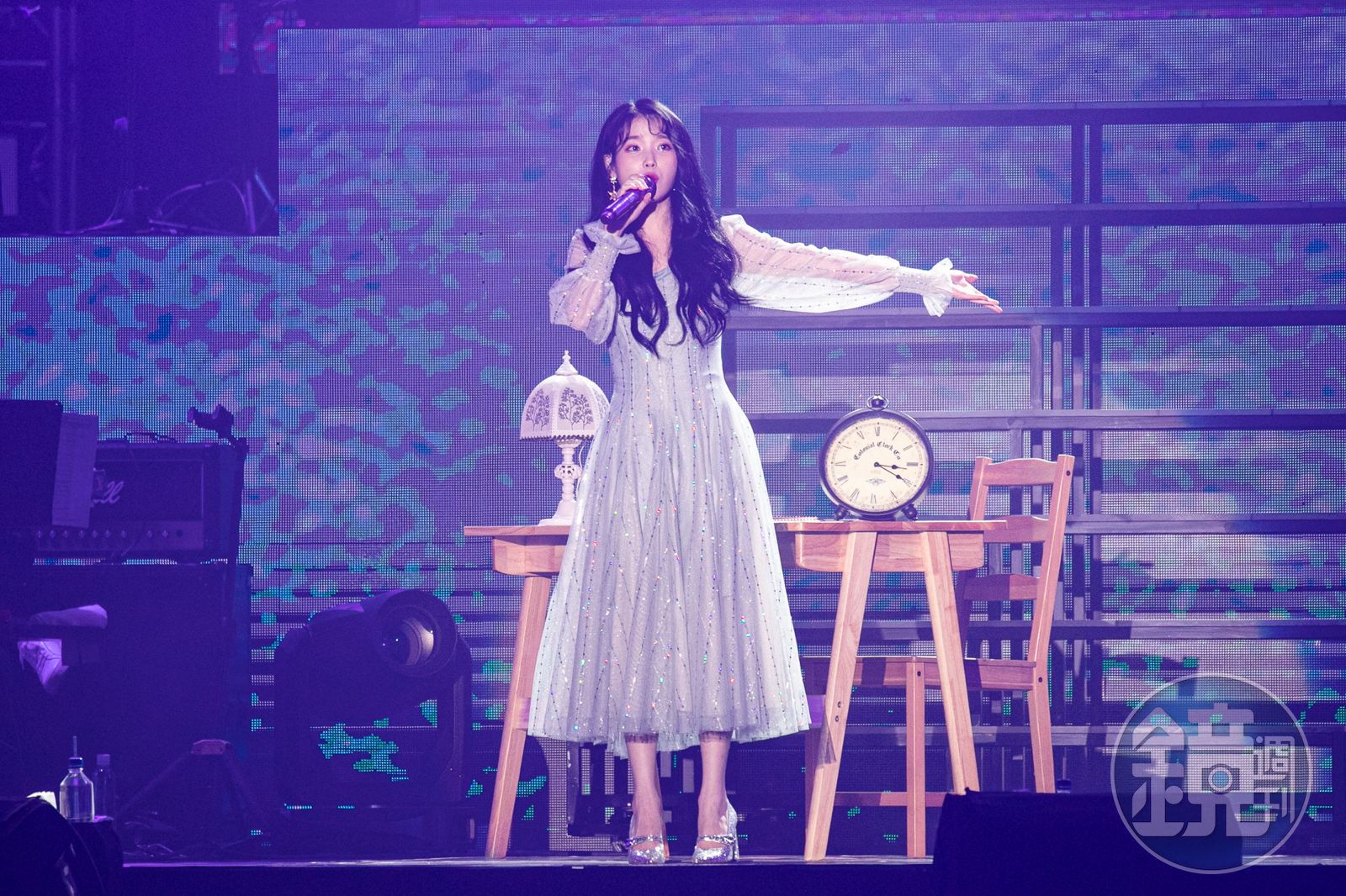 第5次來台開唱,IU這次演唱會有許多談話環節,IU不時使用中文與大家聊天,很注意四聲腔調,她說覺得台灣粉絲喜好很明顯,「大家喜歡的是哪幾首歌,我心裡都有數喔」。而每次台灣演唱會都會安排中文歌曲,IU這次選擇了曾作為《何以笙蕭默》片尾曲的〈孤獨的總和〉(原唱:吳汶芳)。當她演唱時大銀幕並沒有打上中文字幕,但大家都能聽得懂,尤其唱到「真理騰空了孤寂的環境」,讓粉絲聯想起上個月離開人世的雪莉,雪莉的本名為崔真理,與IU情同親手足。