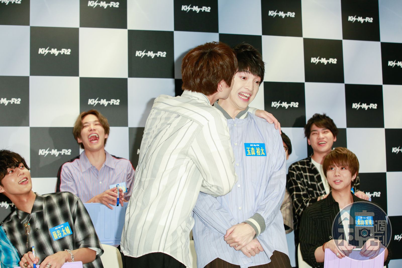 在記者會上,Kis-My-Ft2透過遊戲展現成員間的默契。橫尾涉被公認為最會料理的成員,千賀健永甚至選擇橫尾是「如果去無人島跟他一起最可靠」的成員,千賀說:「橫尾有行船的駕駛執照,加上他會料理,還會殺鮪魚,感覺就算跟他一起在無人島也沒問題。」當二階堂高嗣被成員拱出來搞笑炒熱氣氛時,他害羞地比出手槍姿勢,說了一句中文:「怎麼辦?!」卻因為現場的媒體一時間沒聽懂,沉默的尷尬讓眾人爆出大笑,而Kis-My-Ft2成員也一起比槍喊:「怎麼辦!?」