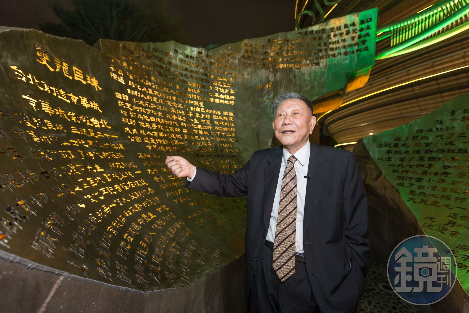 京華城的廣場上有座金屬浮雕,裡頭是已故作家柏楊為沈慶京所寫的文章〈雙龍巨珠〉。沈慶京帶我們走進雕塑品內,指著上面密密麻麻的文字說:「這裡面不是只有祝福而已,像柏楊這樣的人權鬥士,當初是期許我能更上層樓,才會寫下這種文章,……沒想到我今天淪落至此,不得不把京華城拆掉,真的覺得很對不起柏楊他老人家。」