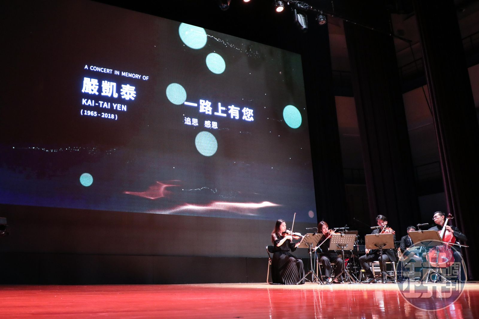 嚴凱泰生前與嚴陳莉蓮最喜歡的活動之一就是唱歌,夫婦倆也都愛在尾牙獻唱與員工同歡,今天的音樂會,除了嚴陳莉蓮演唱多首丈夫喜歡的歌曲之外,音樂會也剪輯了嚴凱泰生前唱歌的片段,以及許多他與集團同仁的合照。