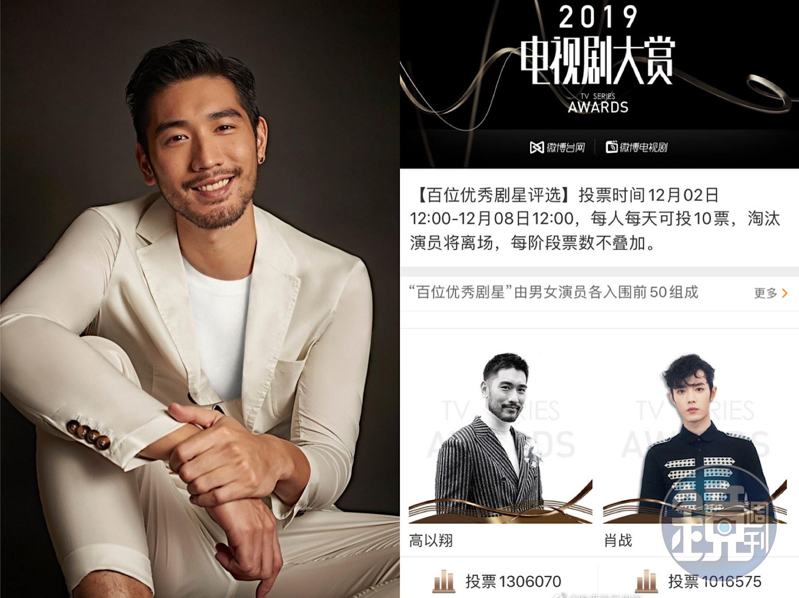 高以翔獲大陸網友票選成為「2019百位劇星票選」冠軍。(左圖傑星傳播提供、右圖翻攝自微博)發布時間:2019.12.04 11:45 臺北時間