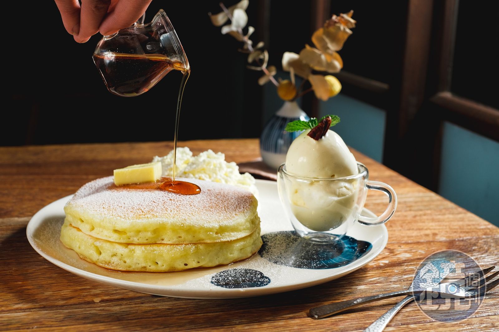 後來Zac結識為阿里山咖啡打開知名度的伊藤篤臣,「Morikoohii森咖啡」是嘉義唯一販售伊藤篤臣烘焙阿里山咖啡豆的地方。店內最受歡迎的「白冰鑽」拿鐵咖啡,是將牛奶慢慢淋在咖啡冰塊上,牛奶與咖啡的融合變化,先是一段視覺享受,再來便可品嘗它的美好滋味;搭配「加拿大楓糖佐有鹽奶油煎鬆餅」,來自法國帶著鹽味奶油慢慢在溫熱香軟鬆餅上漸漸化開,淋上楓糖,一口香草冰淇淋、一口清爽鮮奶油與鬆餅,豐富味覺的組合,讓人大滿足。