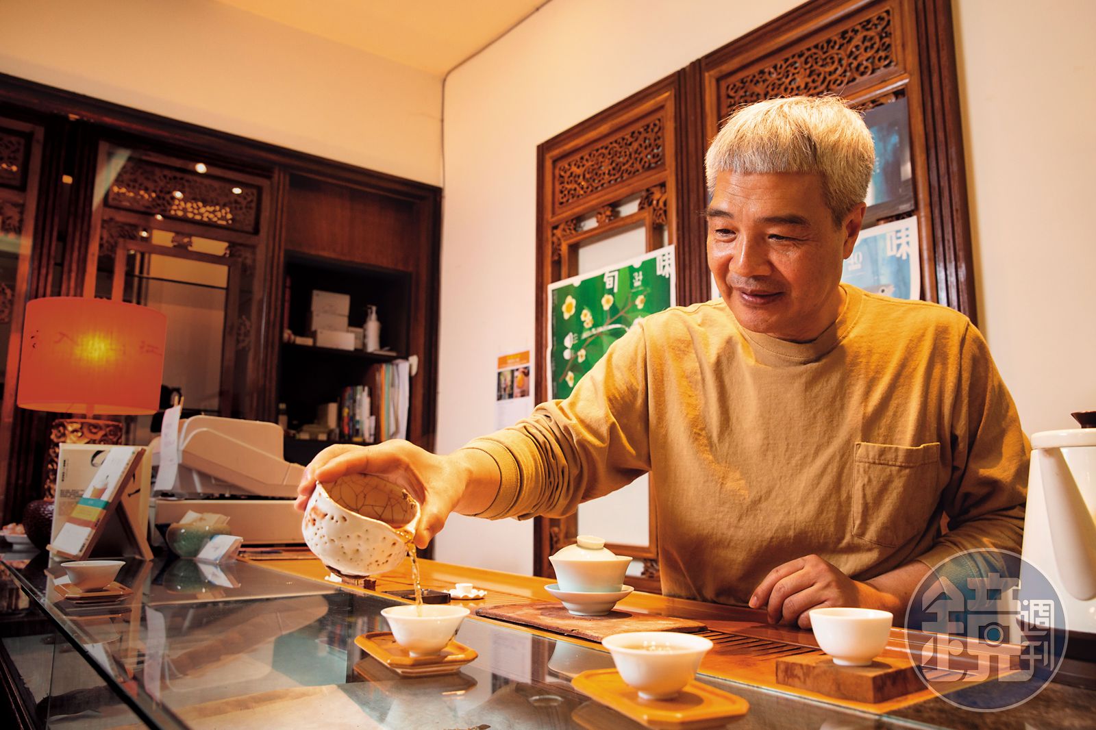 何新松學茶道36年、鑽研咖啡27年,個人工作室1小時手沖咖啡教學課程收費1,200元,平均每月光「束脩」收入就達30萬元。今年55歲的他,14年前從園區科技廠執行副總退休,2008年接手已賠了8年的禾園茶館,複製記憶中母親料理的溫度,在不資遣員工與漲價的前提下,3個月即轉虧為盈,僅營業週一至週五的午餐時段,每月淨利約30萬元。
