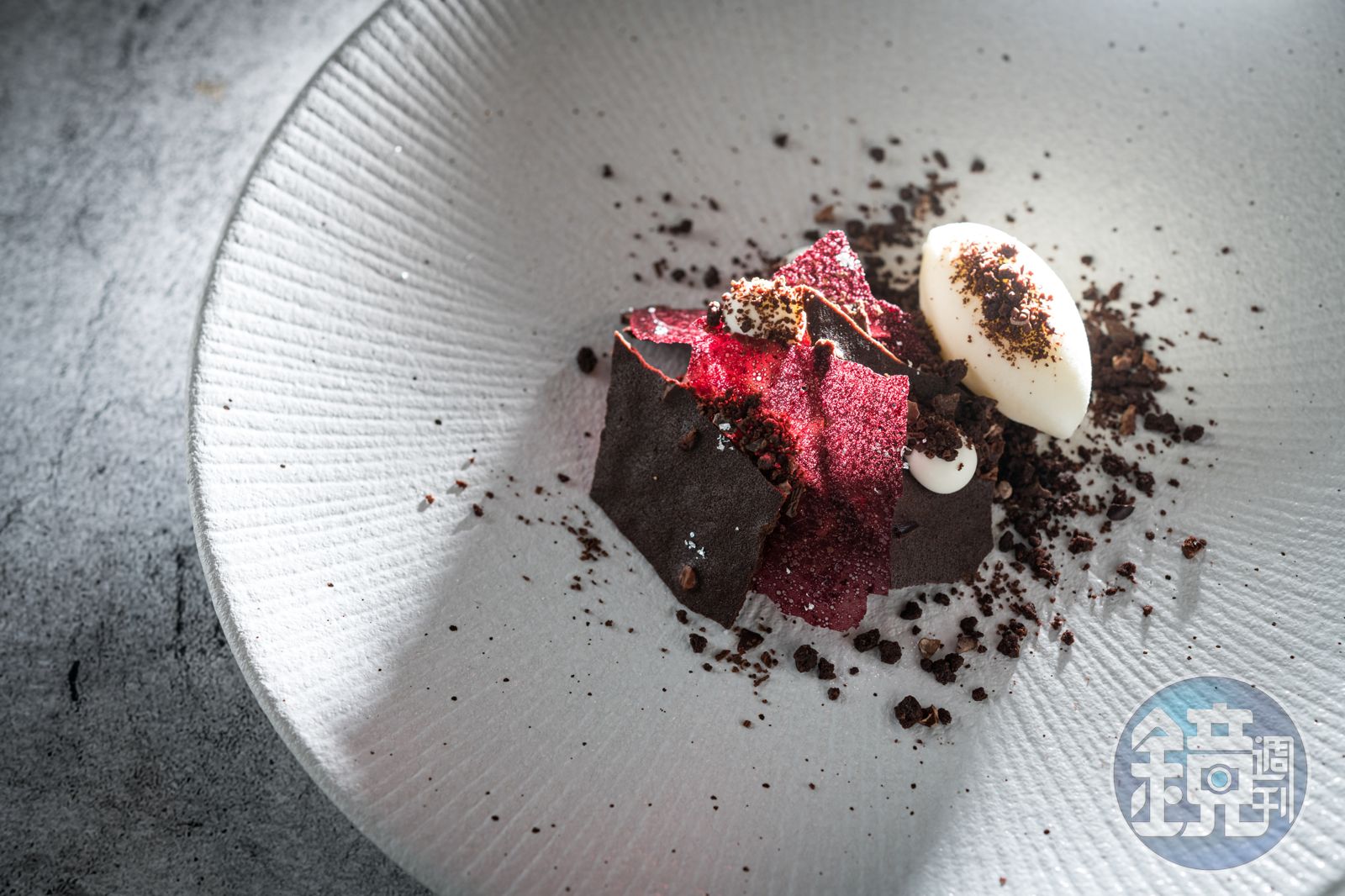 「我覺得是一種挑戰,要讓客人一連吃四道甜點而不感覺膩,味道組合很重要,必須用甜以外的東西來做層次。」Victor說。盤無框架,如空白畫布,端看主廚如何揮灑自己的美學概念與技法,比起品項固定的甜點店,更能自由地創作。曾在「RAW」擔任近3年甜點製作的Victor表示:「在餐廳我們的角色就是執行,但現在甜點成為主角,我可以加入許多自己的想法,更像是創作。」