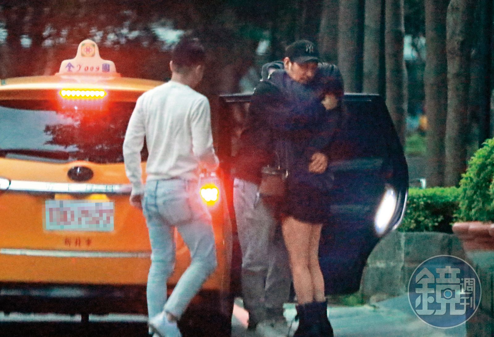 1/28 06:16 就算鳥鳥走了,李進良由兩個年紀較長的妹給勾搭了出來,而且下面有一包凸凸。只見有名紅衣女郎摟著李進良的腰際,手勾他勾得黏,而李進良則摟她的肩,摟得非常親暱。另外李進良又在計程車旁跟另名黑衣女郎十八相送,三點緊貼互抱,看似依依不捨以及欲走還留。