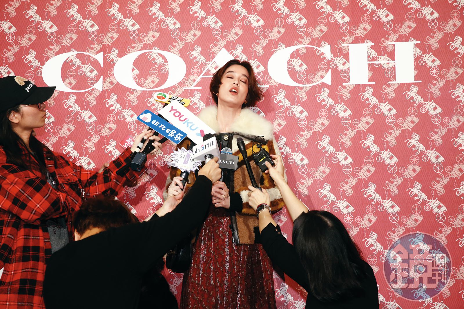 「自己的肉臉自己擋」,郭雪芙頗具自知之明,可能認為臉蛋些許腫了,趕快出手遮掩。出席時尚品牌活動時,陳庭妮一上台就擺出一張跩臉,看似時尚就得厭世的態度,也是頗到位;不像郭雪芙大概自覺有些發福,馬上拿出雙手,擺出V字修修臉,果然一出招就放大絕耶!