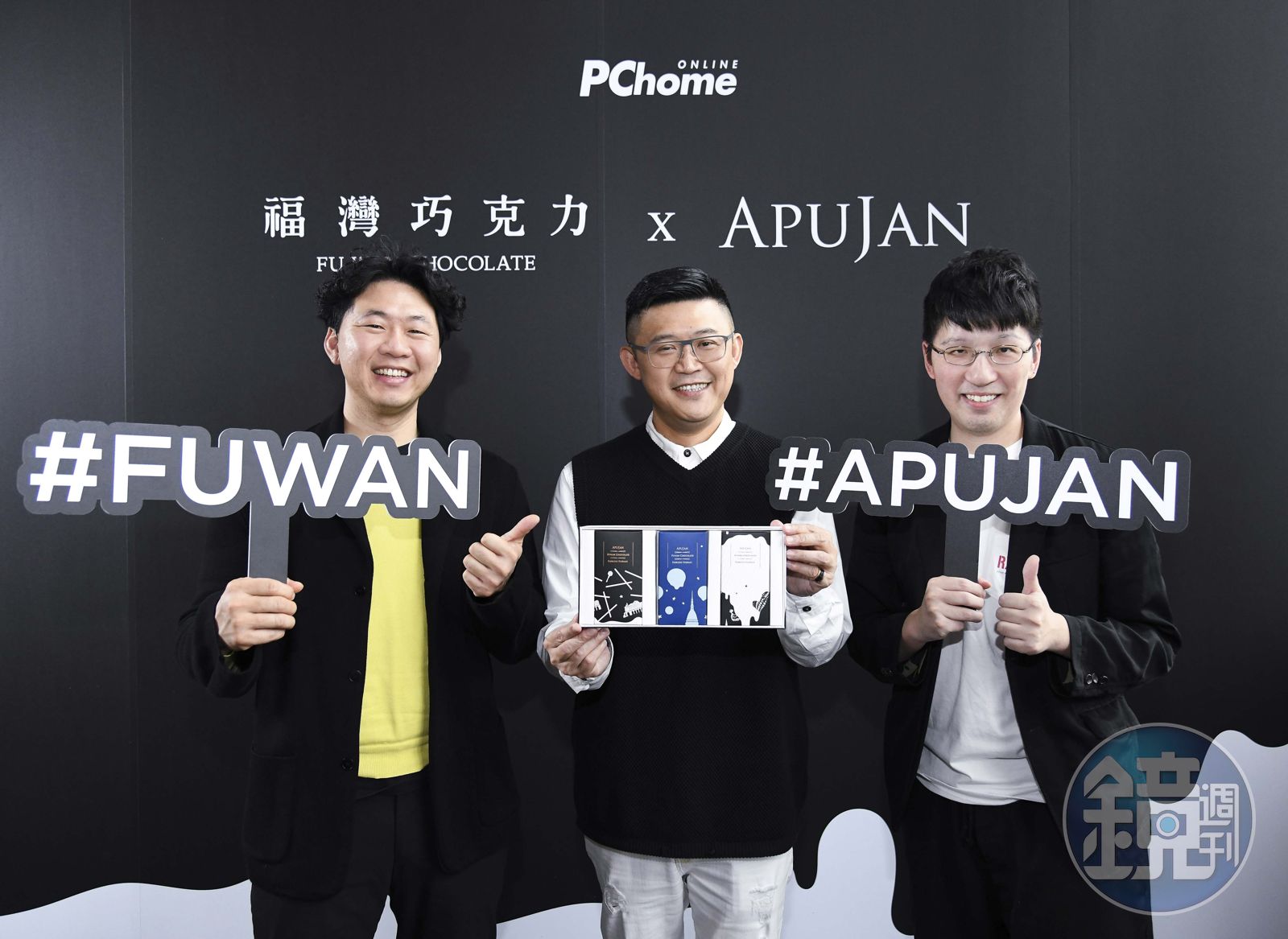 這一次PChome暨雙11之後,在雙12邀請今年亞洲50最佳餐廳授予亞洲最佳甜點師的義大利籍甜點師 Fabrizio Fiorani 提出靈感發想,找來日前才剛在2019世界巧克力大賽橫掃許多大獎的「福灣巧克力」,與APUJAN合作推出3款聯名巧克力。