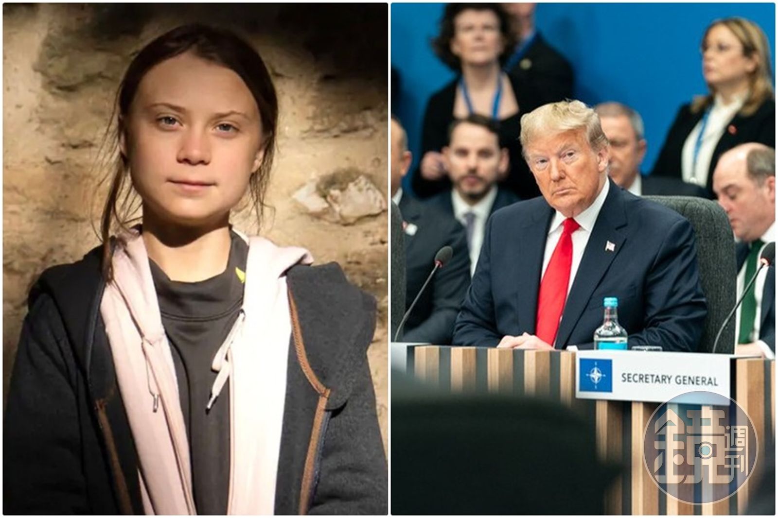 美國總統川普則在推特上表示桑柏格應該「冷靜一下」,並叫她去看場電影。(翻攝Greta Thunberg、Donald J. Trump推特)發布時間:2019.12.13 15:09 臺北時間