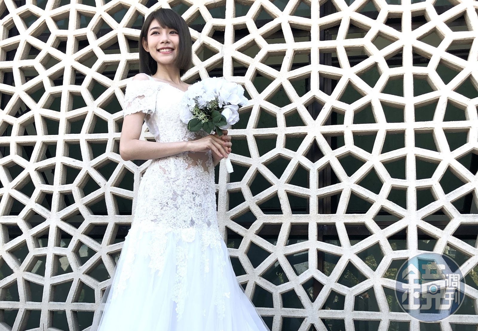 林明禎參加香港真人秀節目《港男入贅手冊》拍攝,首次穿婚紗亮相。(種子音樂提供)發布時間:2019.12.14 16:01 臺北時間