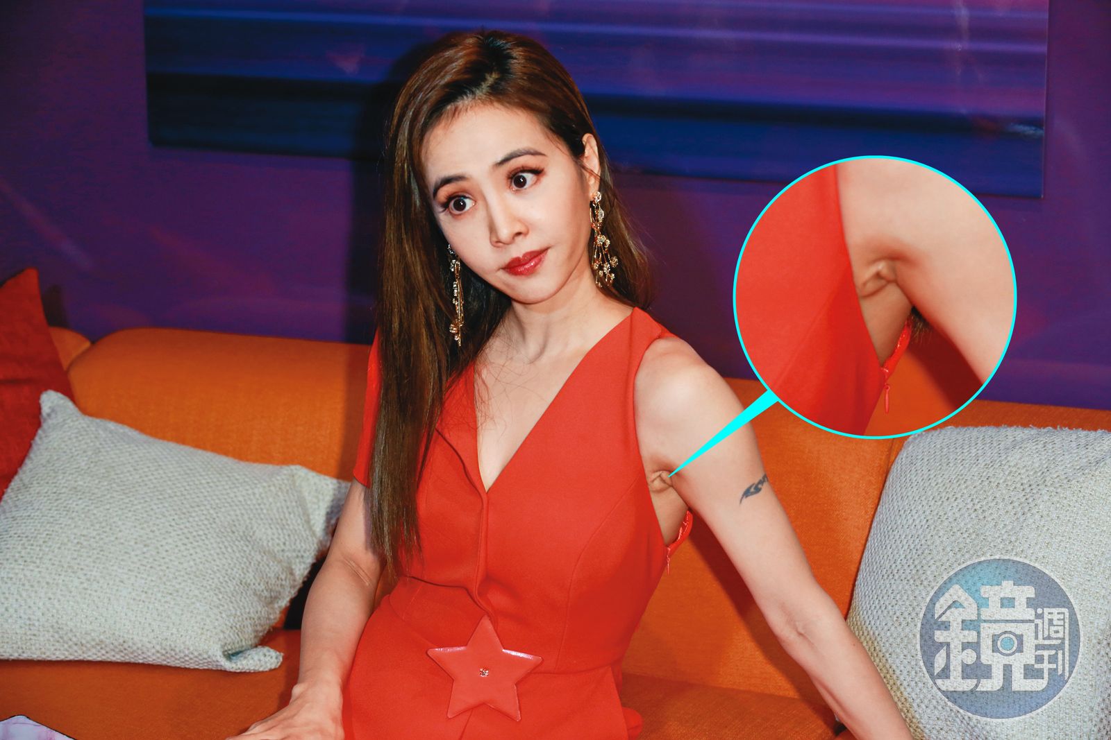 年底即將一路開演唱會開到明年初,蔡依林還是抽空出席手遊活動賺錢,當天她感覺很亢奮,一出場穿得像根紅蘿蔔似的,而且高舉右手、大方放送腋下風光;只是坐下來後,蔡依林左邊腋下反而比較有玄機,出現了神祕洞穴,看上去好詭異吶!