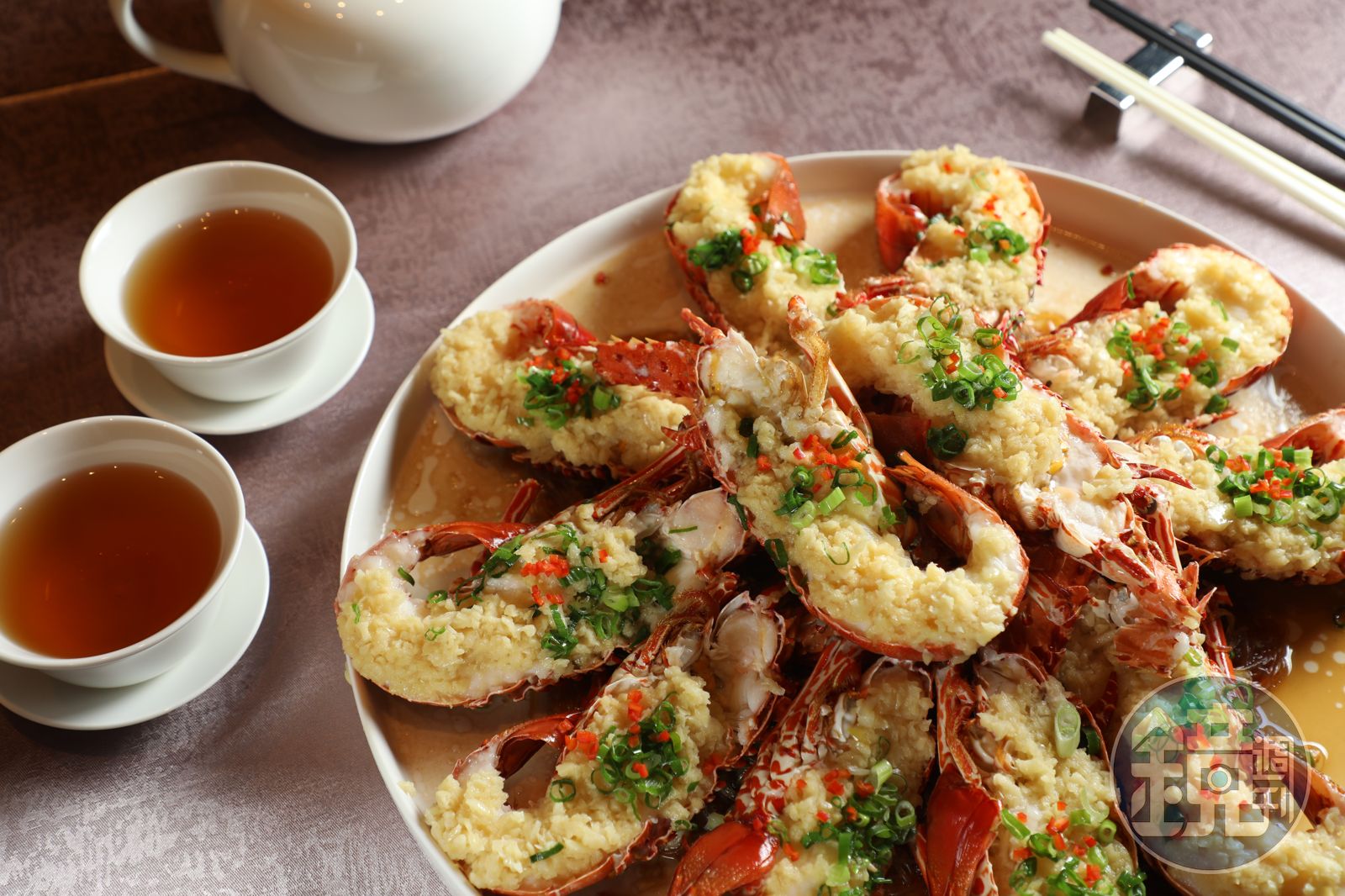 「金銀蒜蒸龍蝦」特選約400公克重的澎湖本地龍蝦製作,肉質Q彈紮實,蒜香濃郁、微微辛辣。(32,800元桌菜菜色)發布時間:2019.12.18 11:57 臺北時間