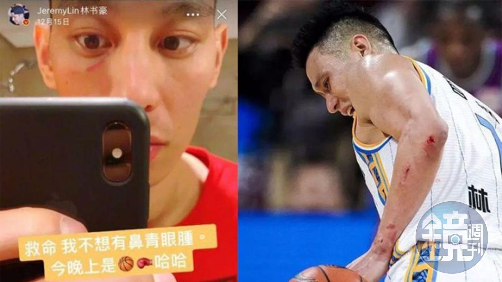 種種肆意帶有攻擊的動作卻未讓裁判響哨,林書豪賽後受訪語帶無奈地說:「當然我不能說太多,我就是乖乖去打球。」他在社群媒體上貼出眼下一條傷疤照,吐苦水寫道:「救命,我不想有鼻青眼腫。今晚上是籃球拳擊賽哈哈。」
