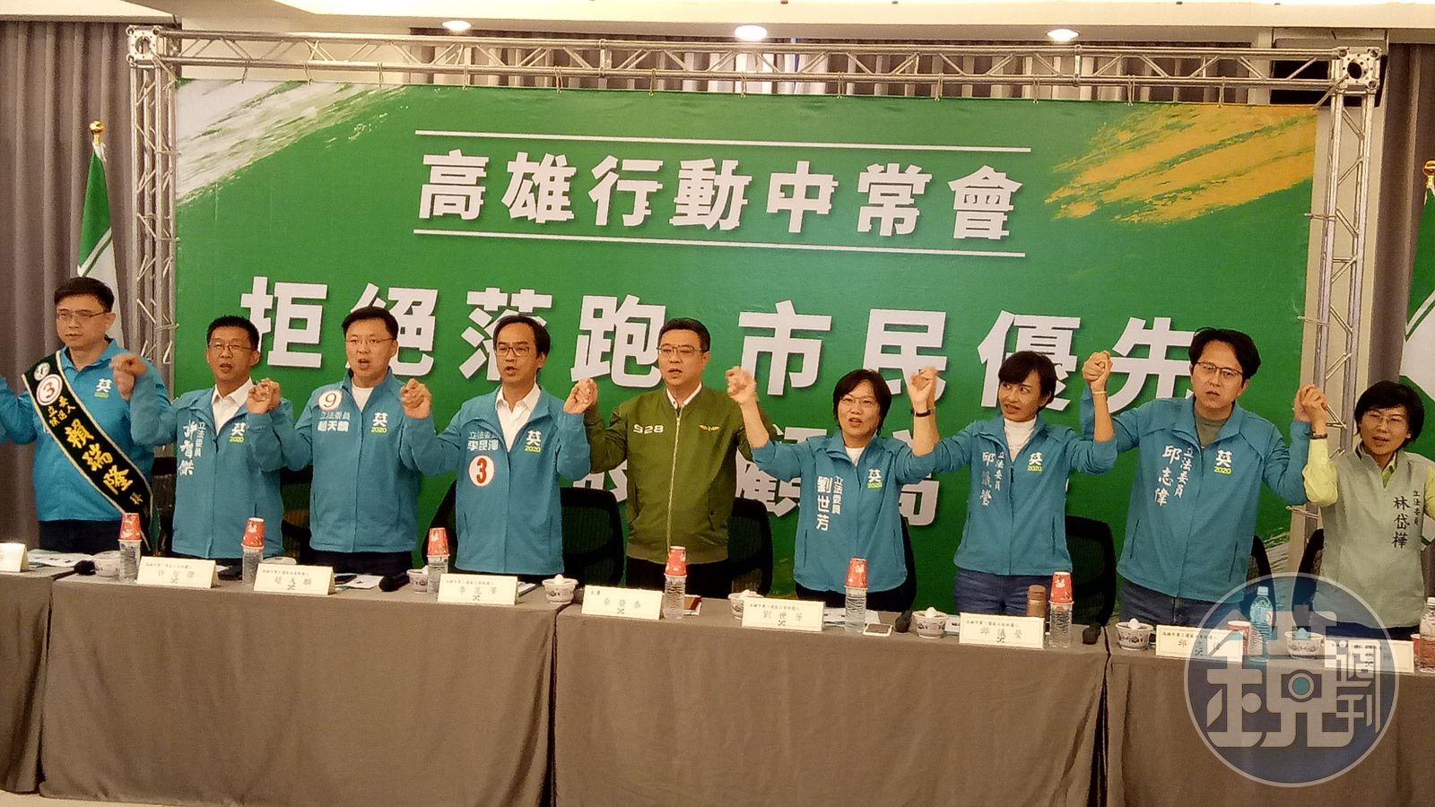會議一開始,由高雄市8位民進黨立委候選人說明選情及對罷韓遊行的立場,例如立委劉世芳說,他的選區原本是韓流重災區,但「成也韓國瑜、敗也韓國瑜」,現在的情勢已經比去年底改變許多。