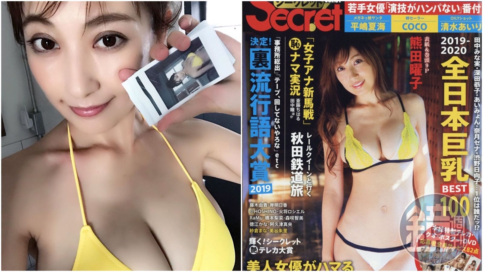 熊田曜子為雜誌拍攝封面,她雖然已是3名子女的母親,身材絲毫沒有走樣。(合成圖,翻攝熊田曜子IG、日本HMV官網)