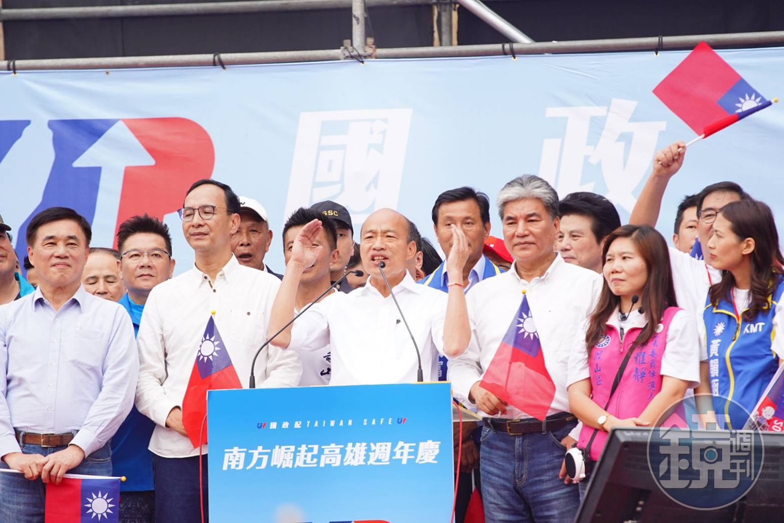 話鋒一轉,韓國瑜痛批,蔡政府執政3年半來,在距離投票還有20多天前,突然說要重視南部發展;反觀他在上任市長後,經市府團隊1年來努力,全世界華人都想來高雄,未來甚至有上百萬人將湧入觀光旅遊,他保證,只要當選總統一定重視南北平衡發展。