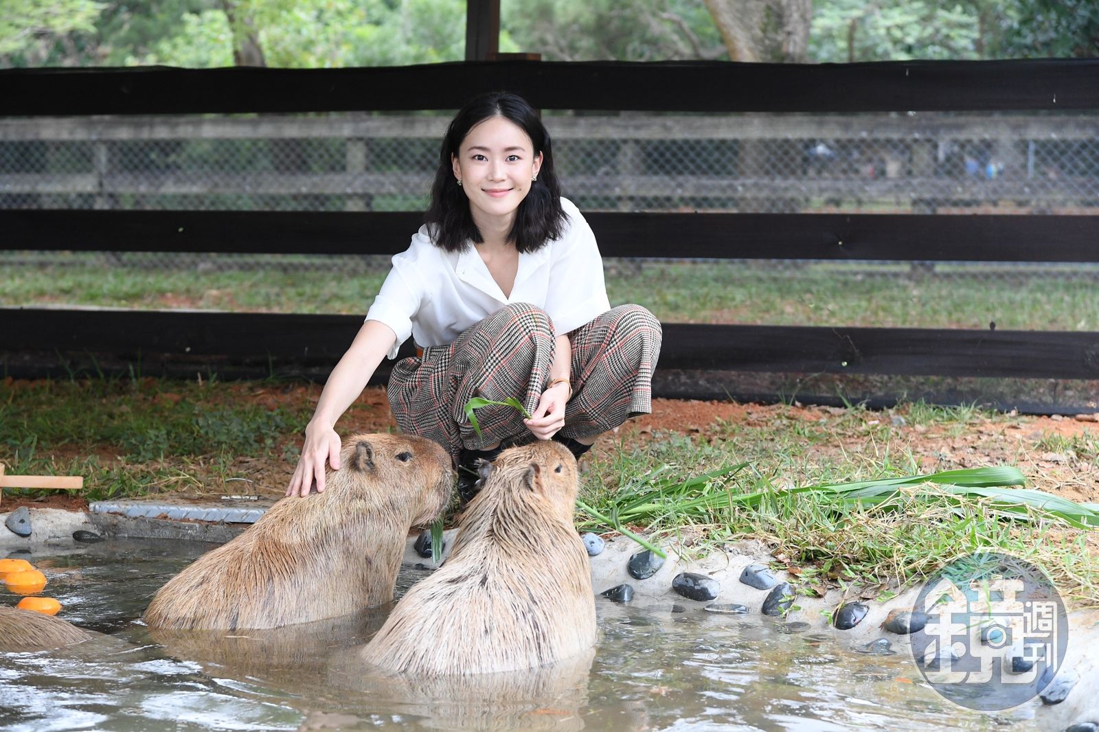 而今天第一次接觸水豚君,鍾瑶特地提早到「埔心牧場」先與3隻水豚連絡情感,在記者會中不斷用牧草餵食拉攏與水豚的關係。鍾瑶非常愛動物眾所皆知,完全不怕大型動物的她,最怕的就是蟑螂,而最愛的是貓頭鷹,她表示喜歡貓頭鷹的原因是「眼神好吸引人,好神祕,好像穿越時空的不存在這世上的生物,像外星人派來的監視器」,她笑說朋友現在無論出國去哪都會為她找貓頭鷹木雕,不過鍾瑶個人倒是沒有收藏的習慣。