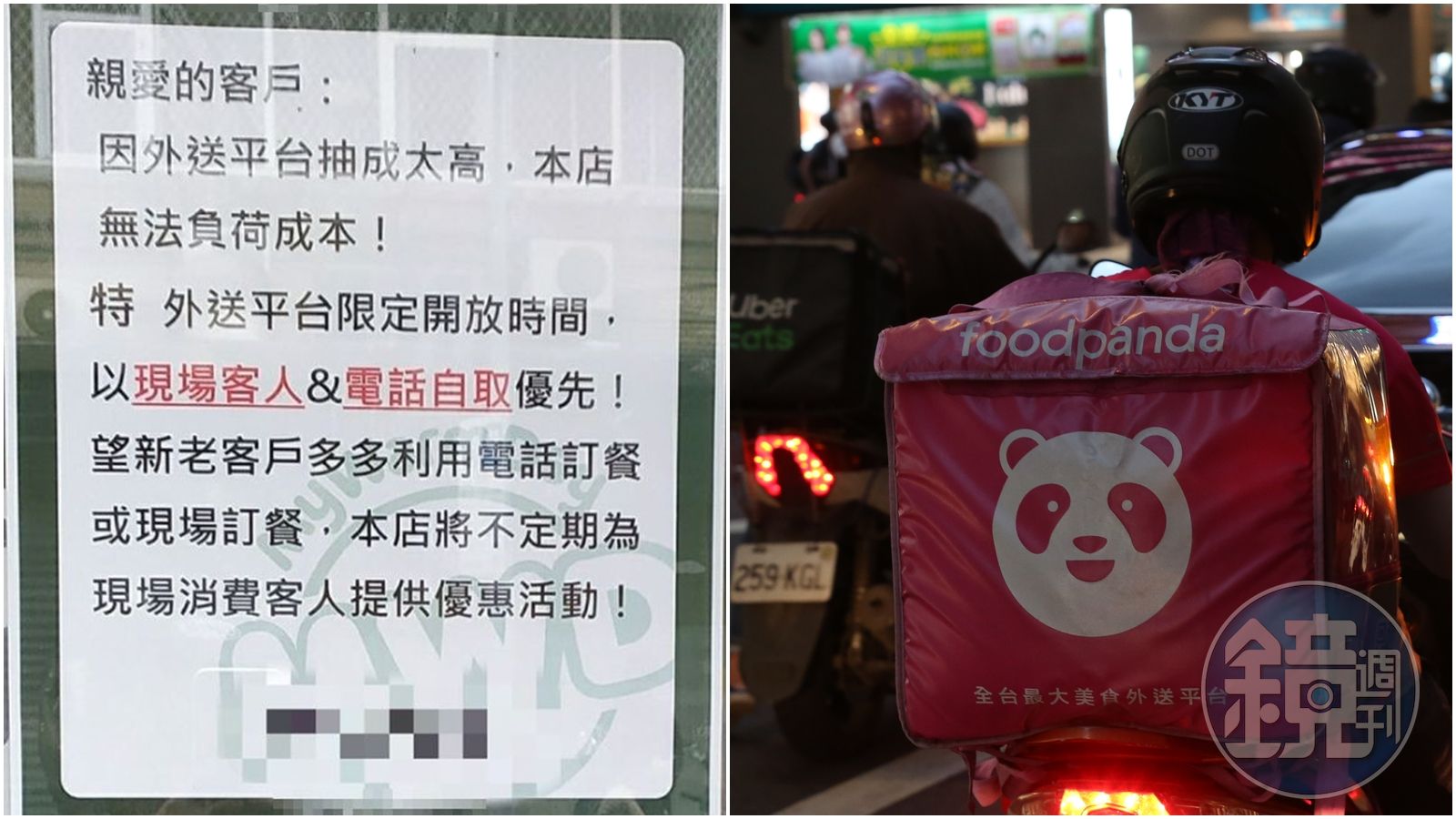 一名外送員在臉書匿名社團「靠北熊貓」發文,並附上一家連鎖早餐店在門口貼出的公告,內文指出因外送平台抽成太高,店家無法負荷成本,因此外送平台將限定開放時間,未來會以現場客人、電話自取者優先,希望老客戶多利用電話訂餐或現場訂餐,店家也會不定期為現場消費客人提供優惠活動。
