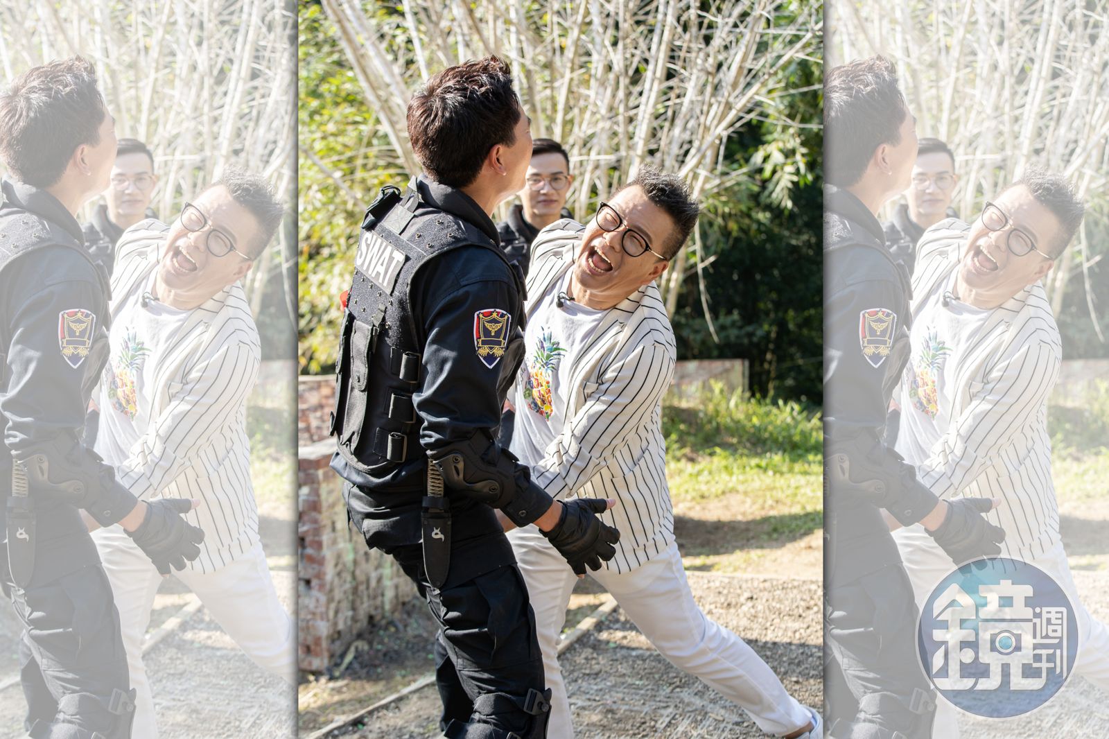 王傳一笑說「因為當天從一早就拍了很多動作戲,拍到後來其實蠻累的,可能有點恍神了,但玉琳哥一來現場氣氛立刻就嗨了起來,連我也在恍惚間莫名其妙被他帶著走,有種被拐了很多答案的感覺。」